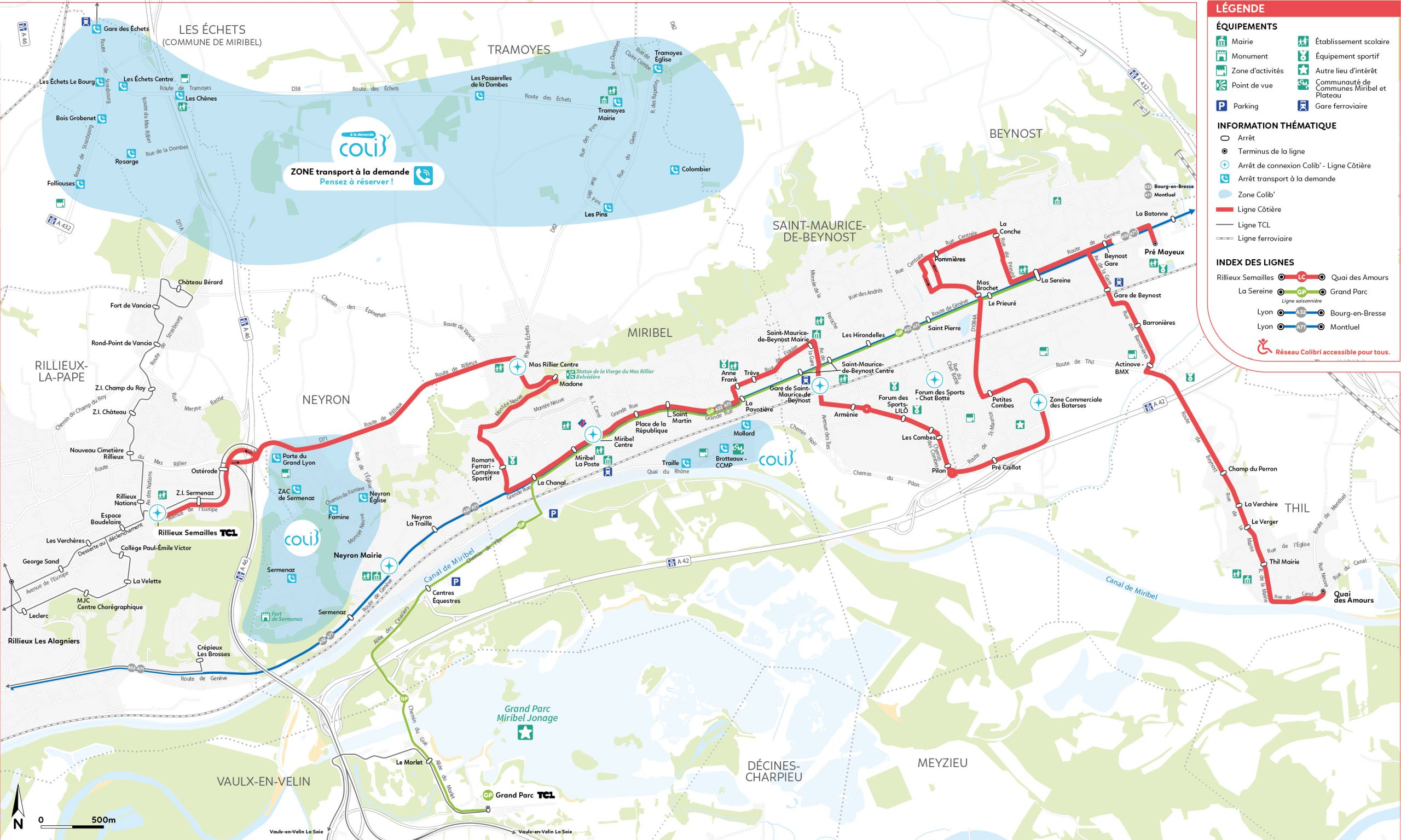 La ligne Côtière assure la liaison entre Rillieux Semailles et Thil Quai des Amours, en desservant les communes de Miribel, Beynost et Saint-Maurice-de-Beynost. Grâce à un itinéraire optimisé et direct, elle offre un accès facilité aux principaux pôles d’intérêt de ces territoires, tout en offrant une solution de transport plus fluide et accessible.